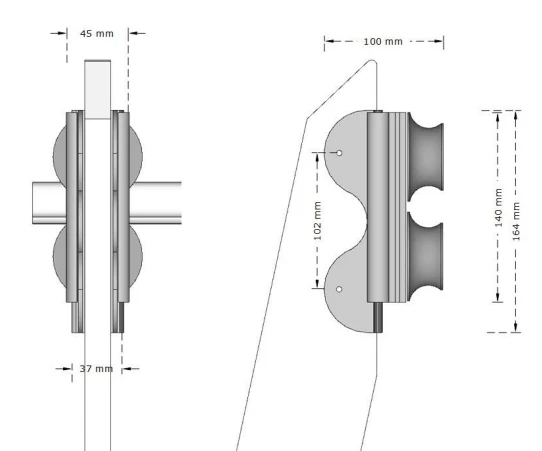 The rollers feature thermoplastic wheels which are positioned above and below the rail ensuring quiet and seamless movement around a curved corner rail.