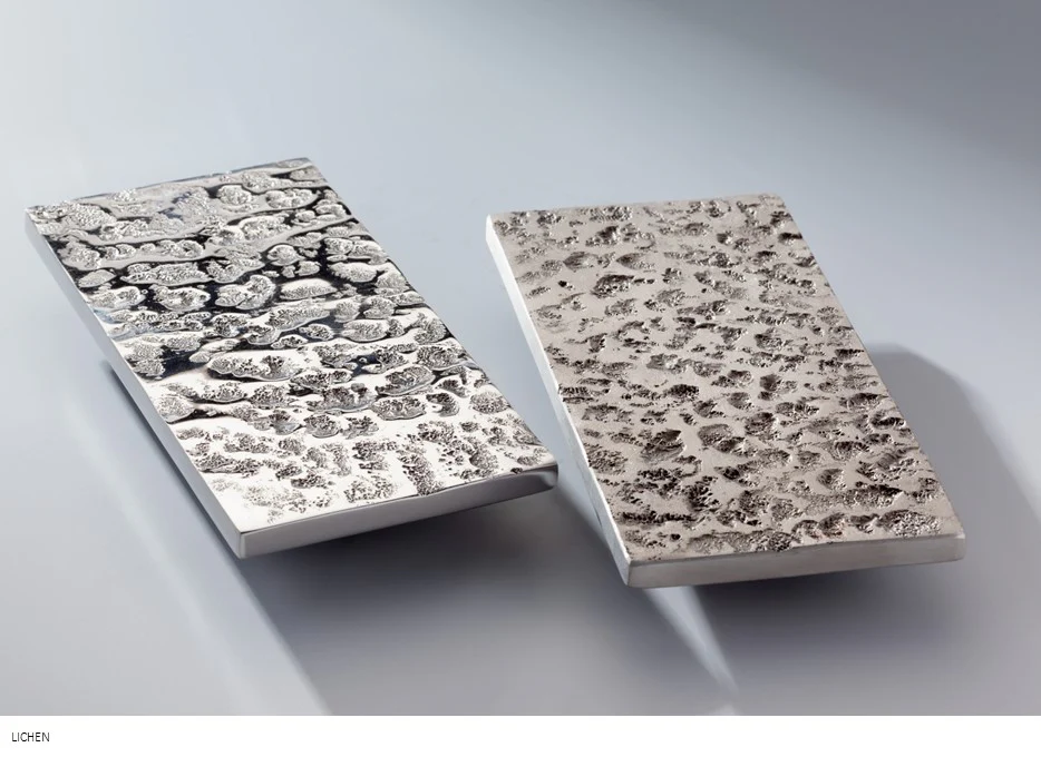 Texture Options: Forged (All finishes available), Lichen (Steel finishes only), Limestone (Brass finishes only), Chiseled (Brass finished only), Wave (All finishes available).