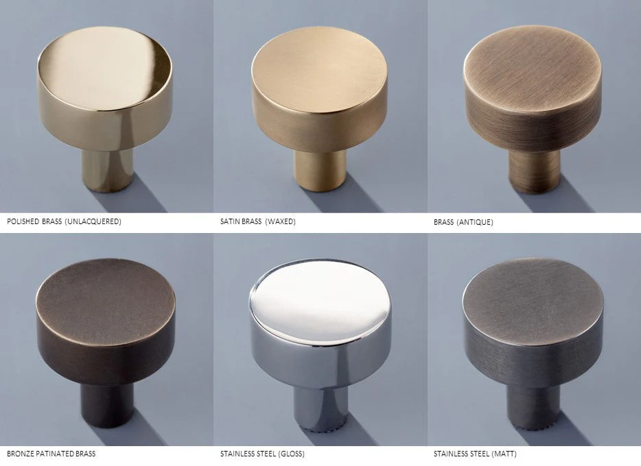 Finishes: Polished Brass (Unlacquered), Satin Brass (Waxed), Antique Brass, Bronze Patinated Brass, Stainless Steel (Gloss), Stainless Steel (Matt) See below information about living finishes.